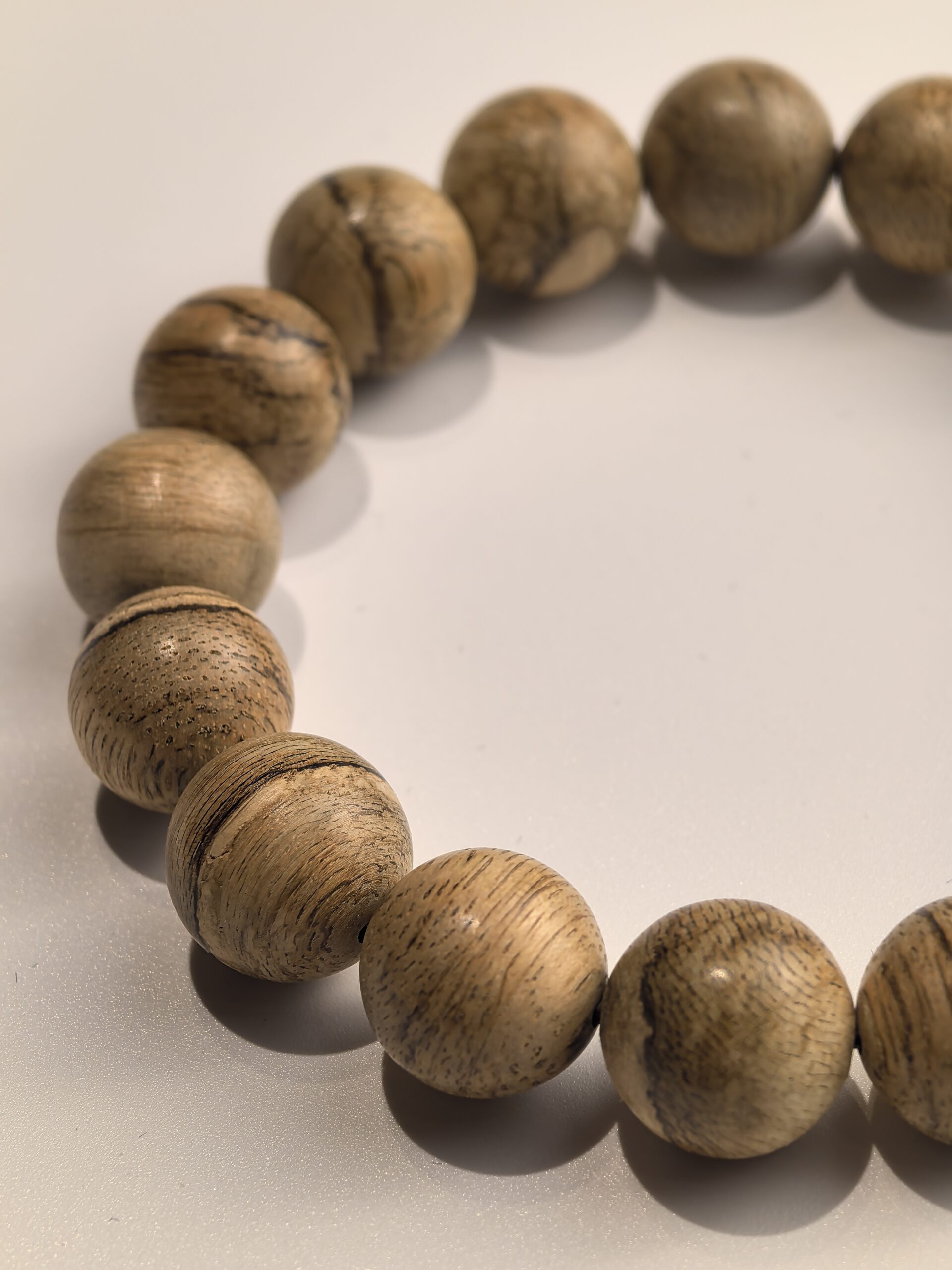 ハイナンホワイトリュー:ハイナンホワイトリューは木質が硬く、密度は適度で、模様は豊富多様で「鬼顔模様」、「節模様」、「水波模様」などがあり、特に「鬼顔模様」はその象徴的な特徴です。淡い降香の香りを発し、濃くはないが長続きし、この天然の香りは神経をリラックスさせる効果があります。五大名木の一つに数えられ、中国国家一級保護植物です。成材するのに時間がかかり野生資源が希少なため、「木の黄金」と称えられています。その材料で作られたブレスレットは単なるアクセサリーではなく、コレクション価値のある芸術品であり、豊かな文化的意味を含んでいます。